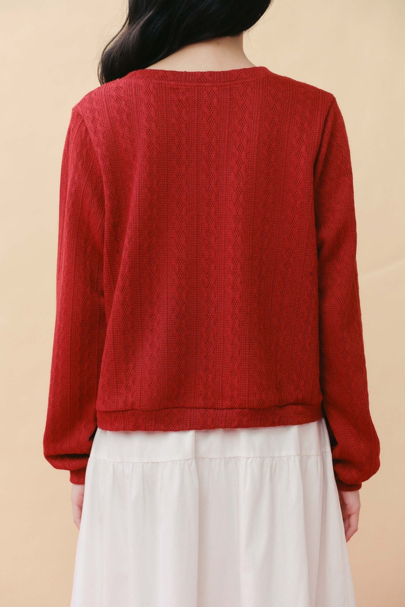 Áo cardigan vải họa tiết - Đỏ - T1156