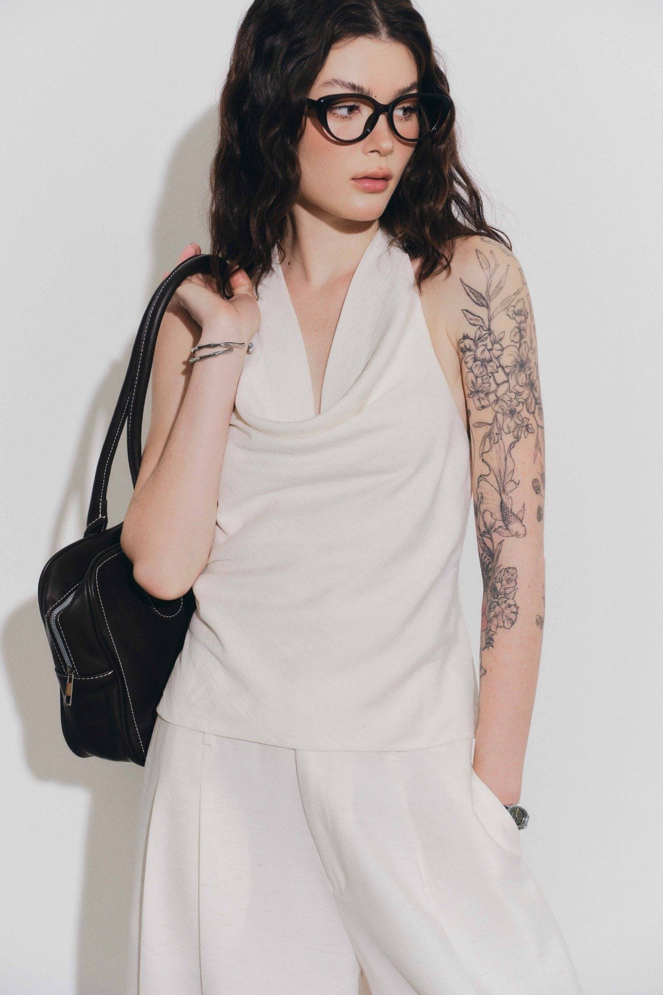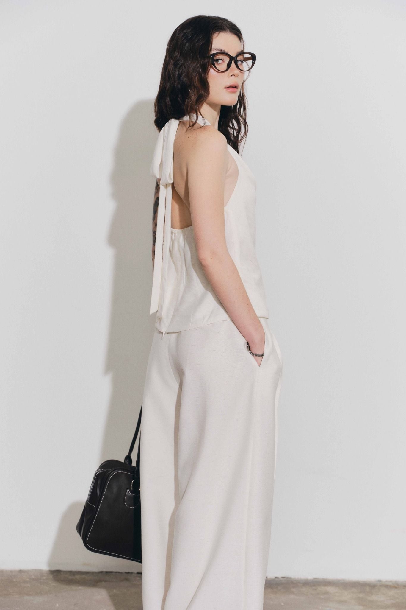 Áo cổ đổ cột dây - Be nhạt - T1129