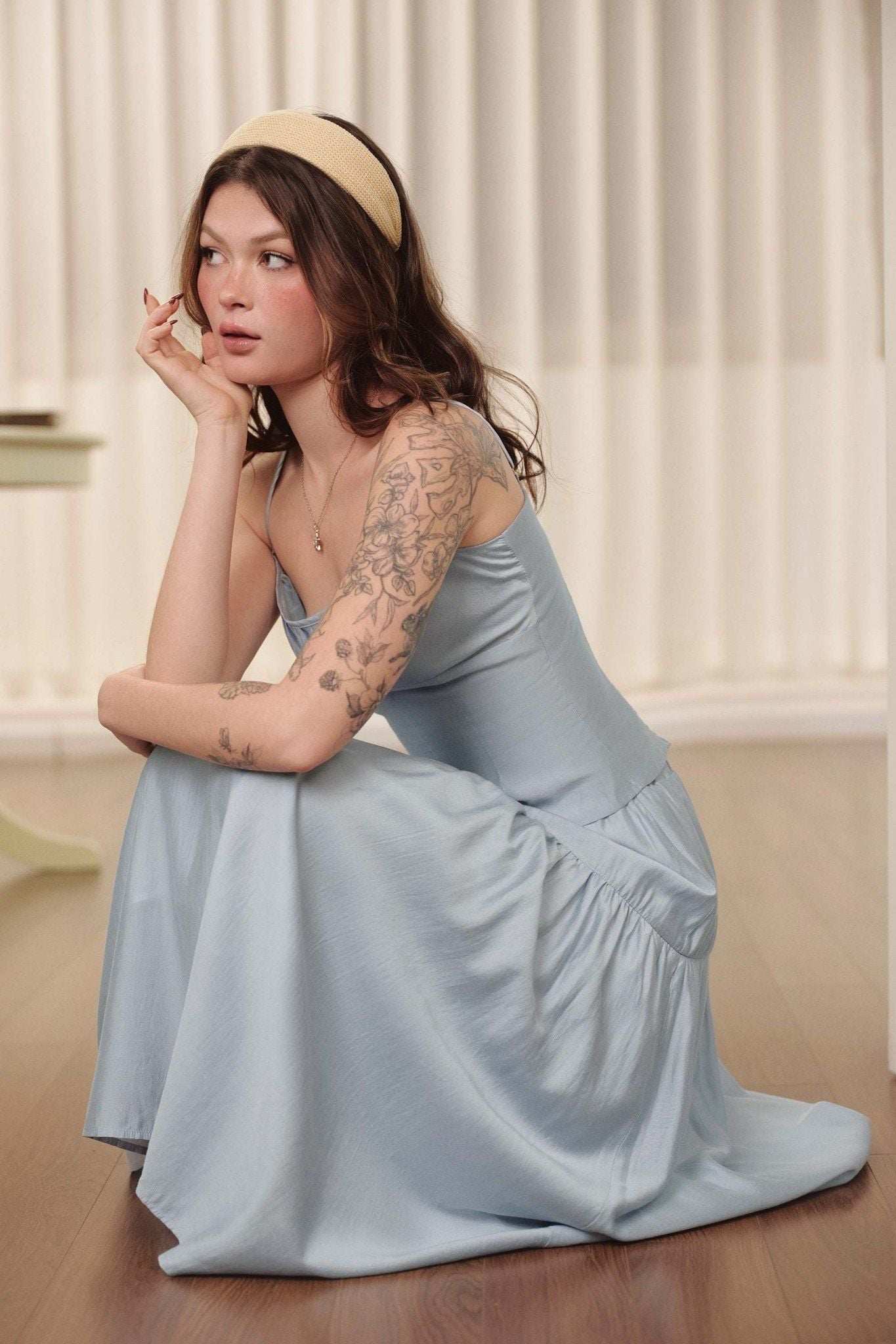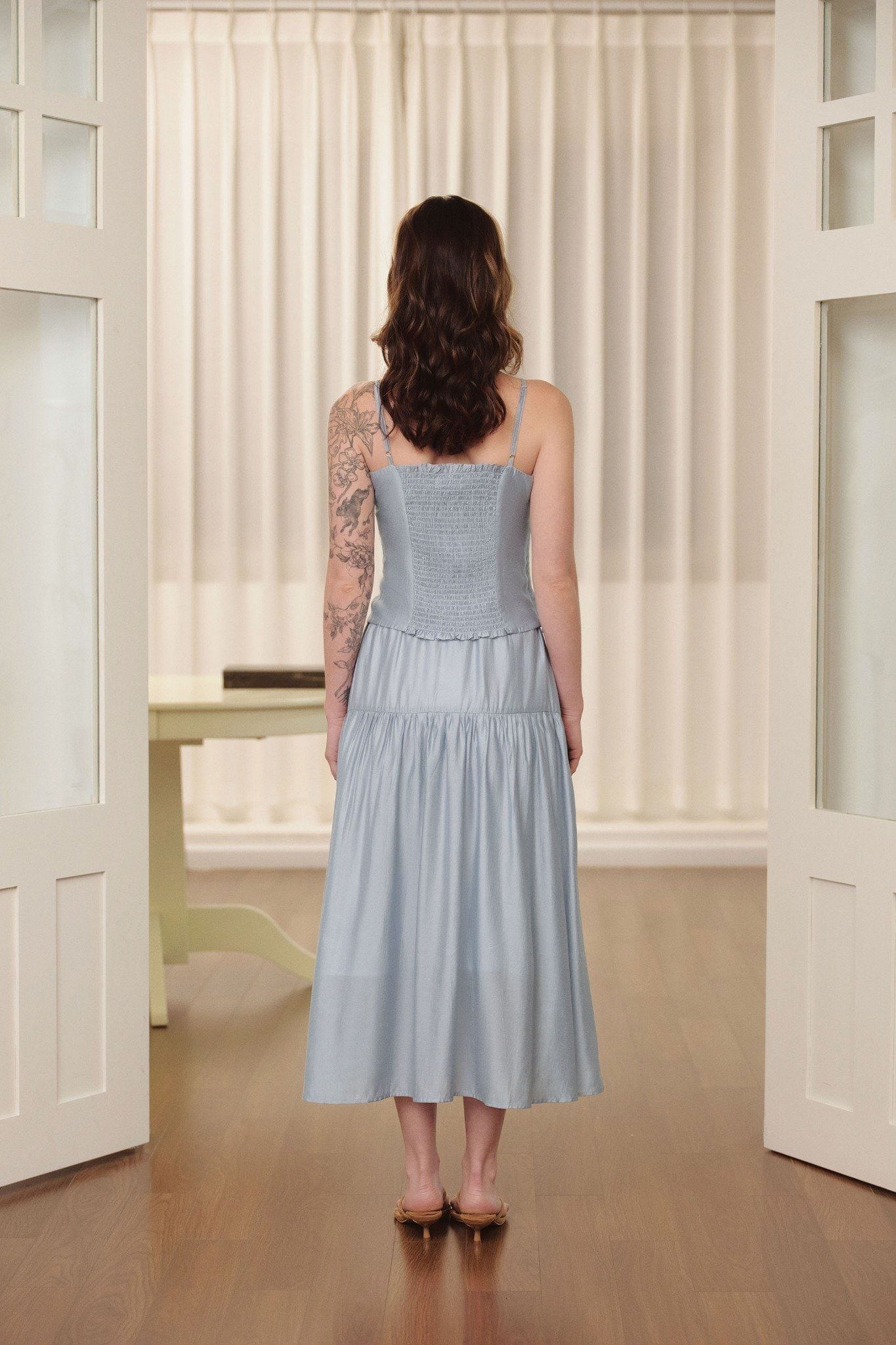 Áo hai dây nhún ngực - Xanh nhạt - T1138
