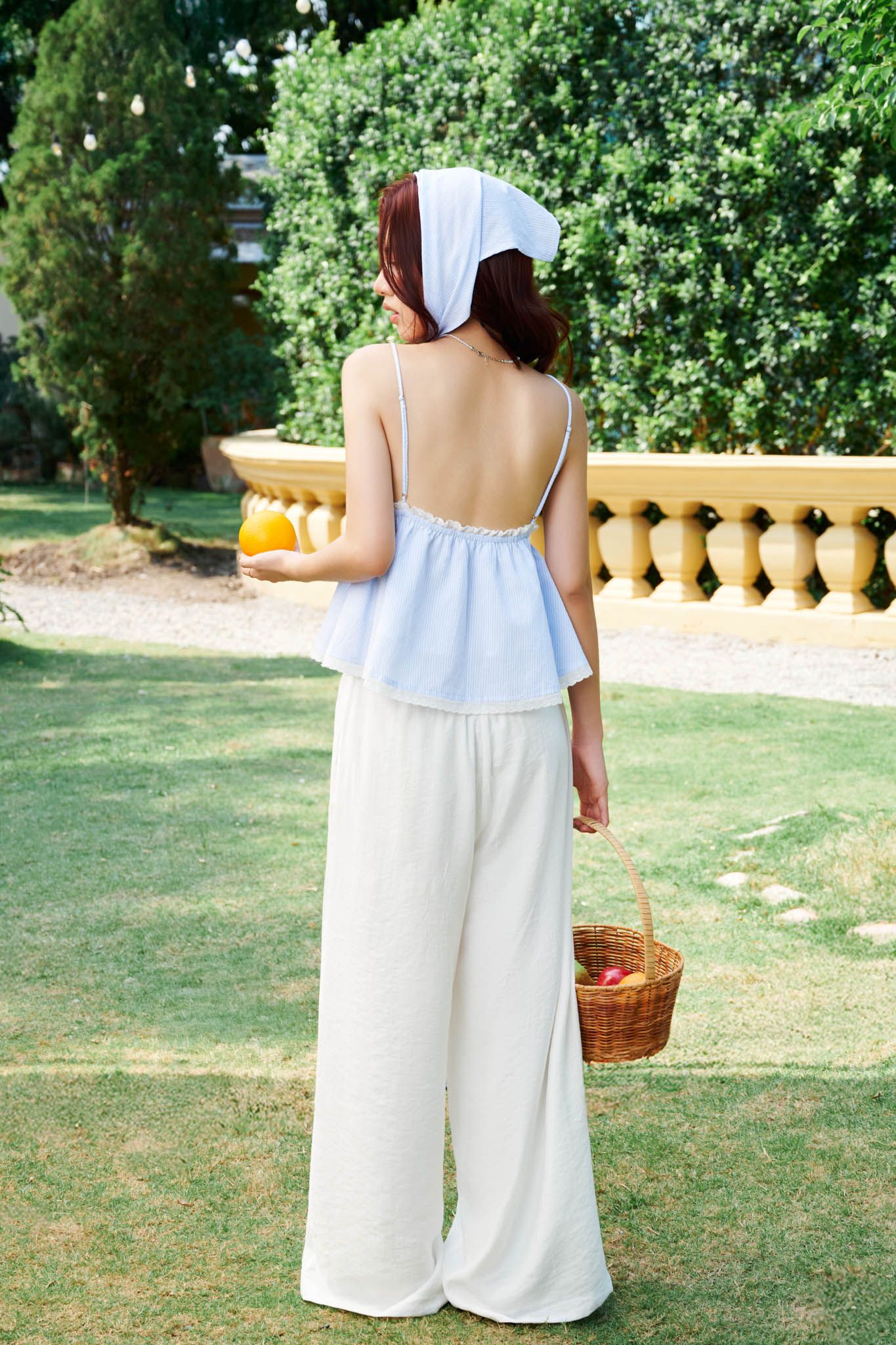 Áo hai dây phối đăng ten - Xanh dương - T1097