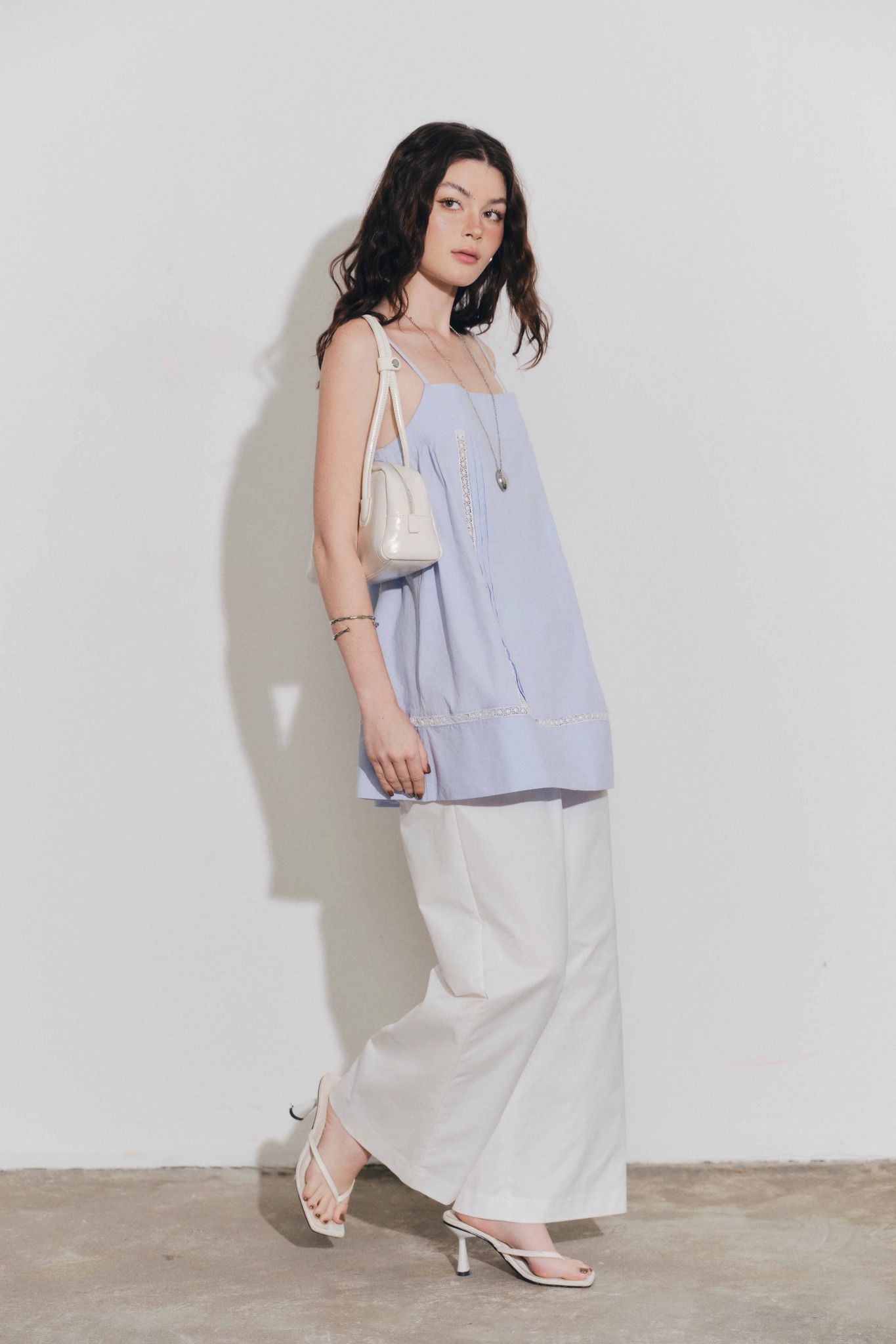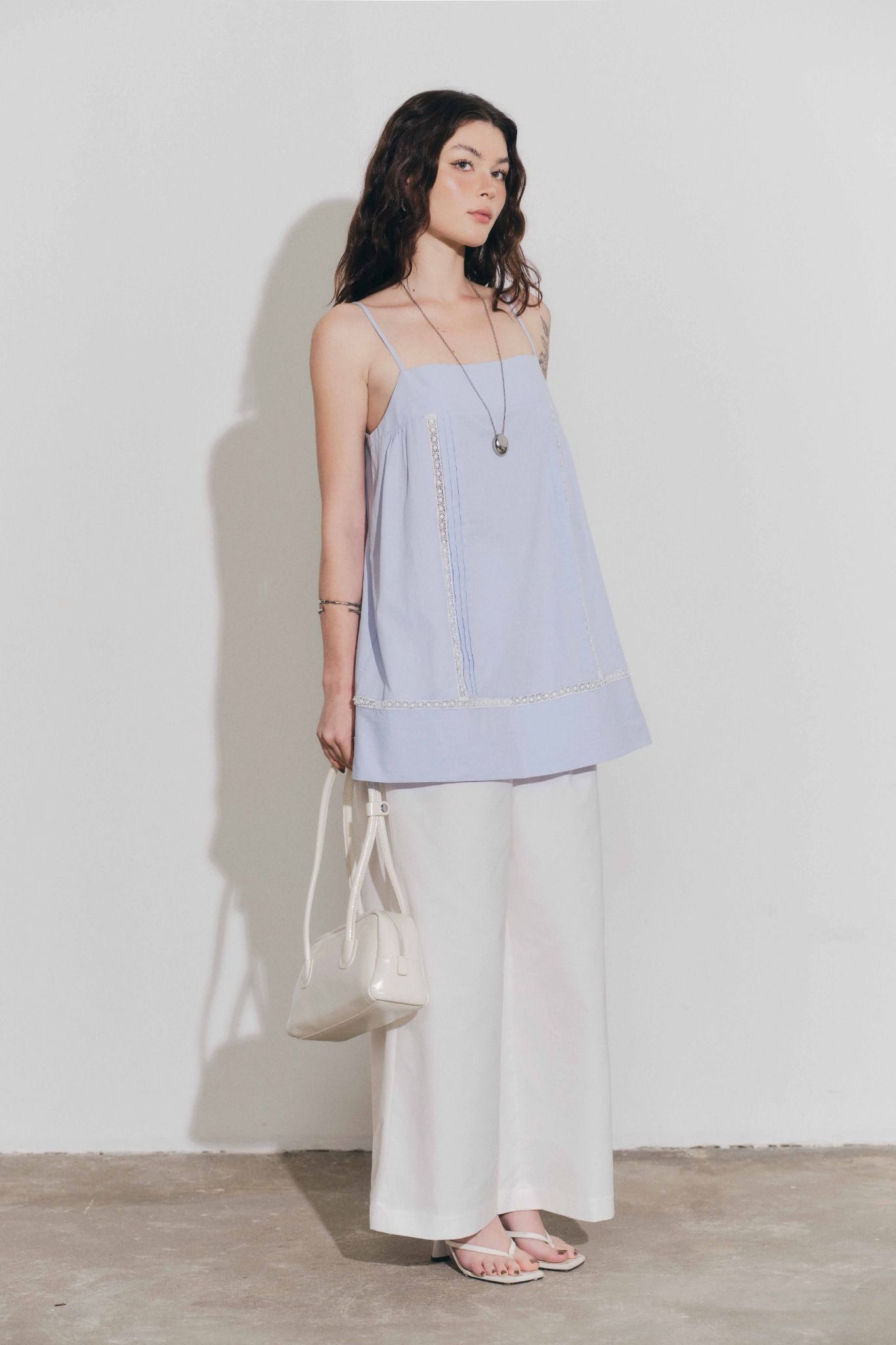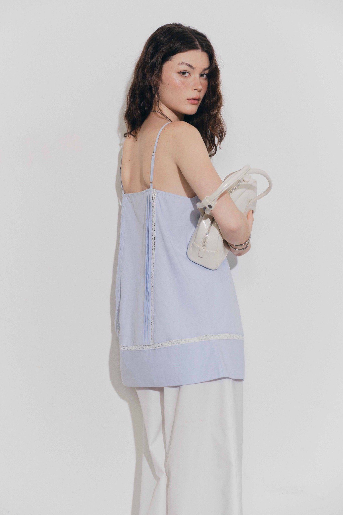 Áo hai dây phối ren - Xanh biển - T1134