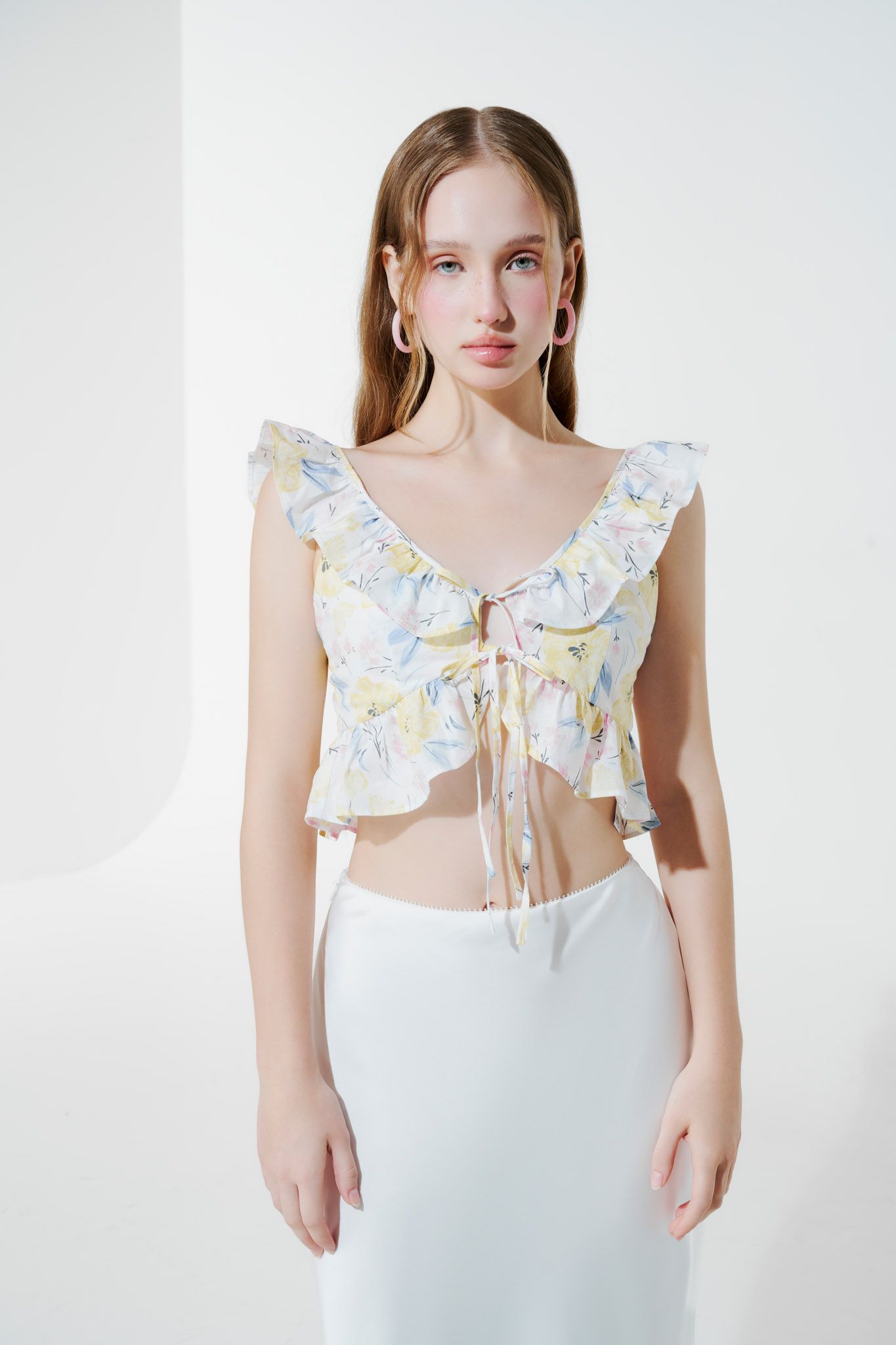 Áo kiểu in hoa tay cánh tiên - Trắng - T0945