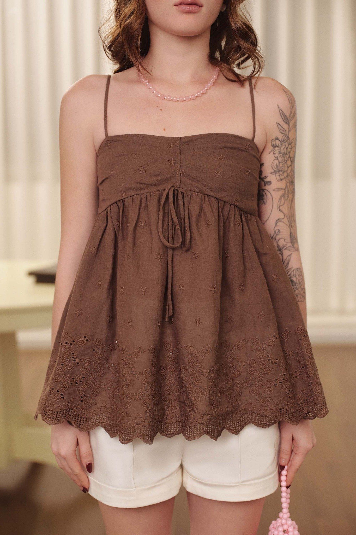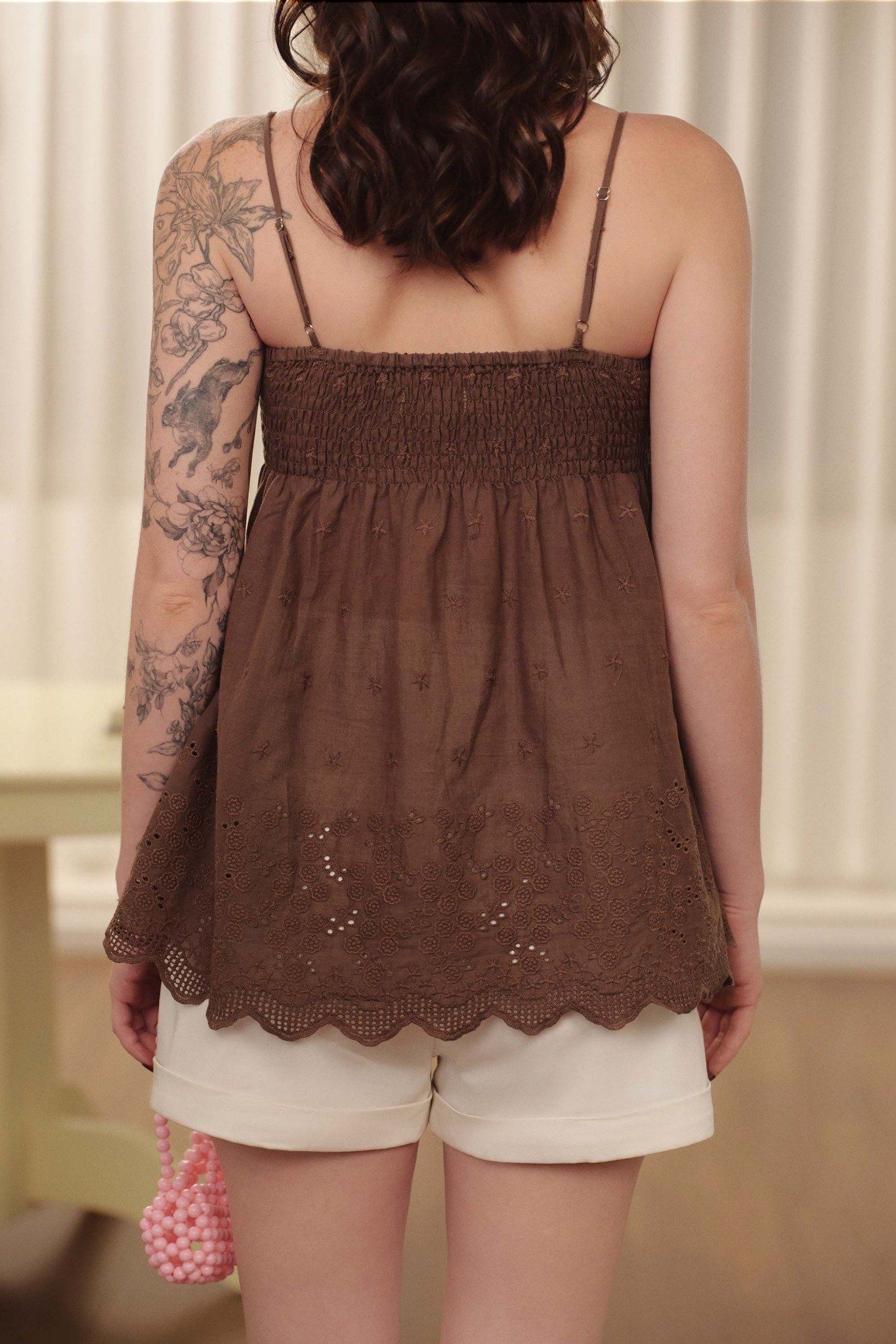 Áo kiểu vải đục lỗ - Nâu - T1153