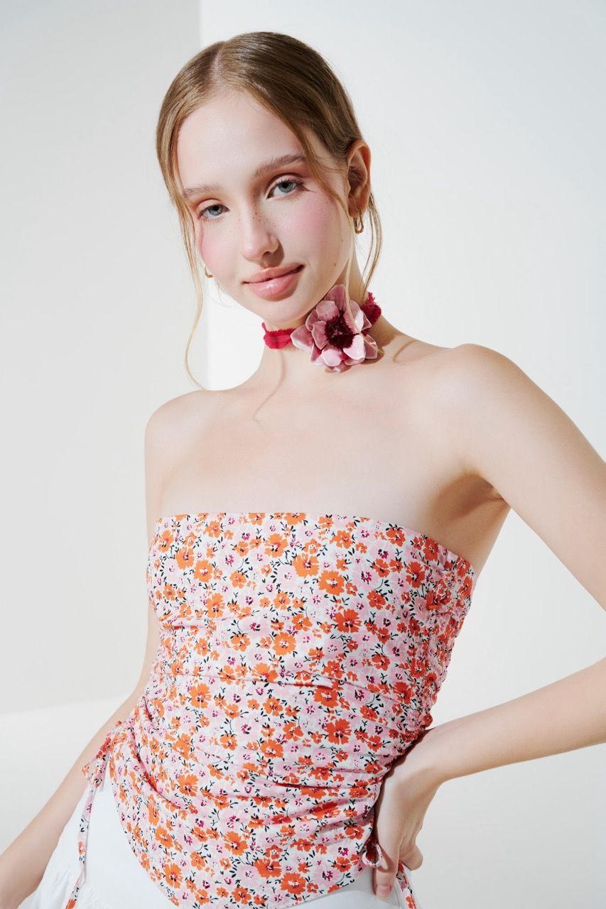 Áo ống rút dây hoa nhí - Hồng - T0915