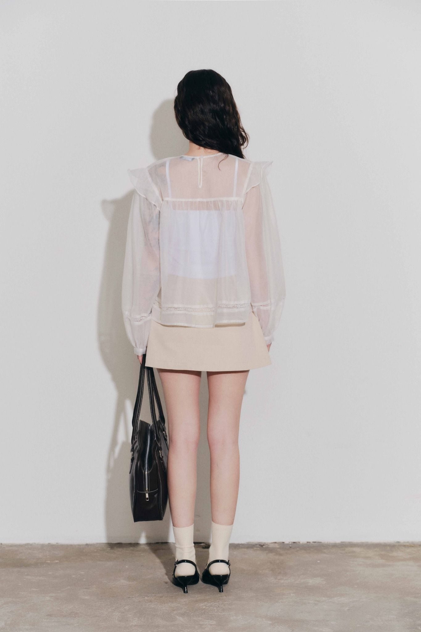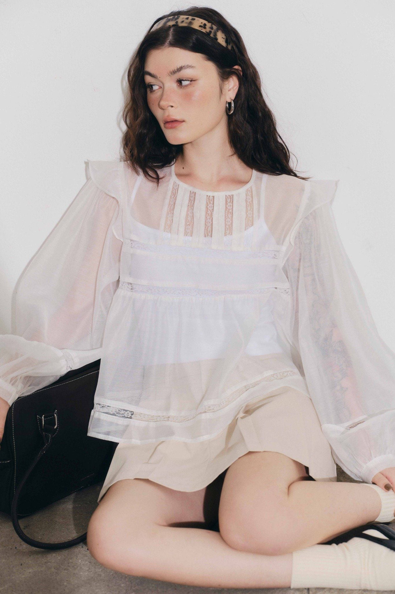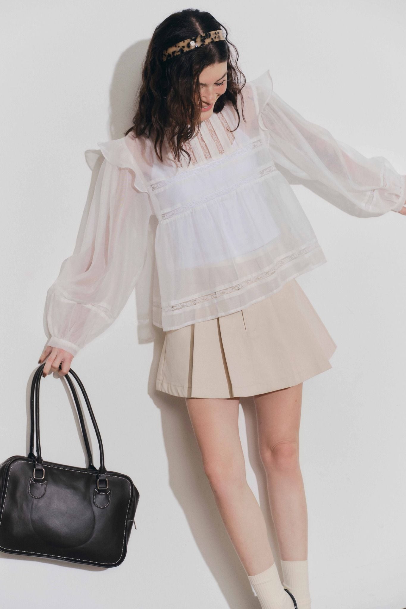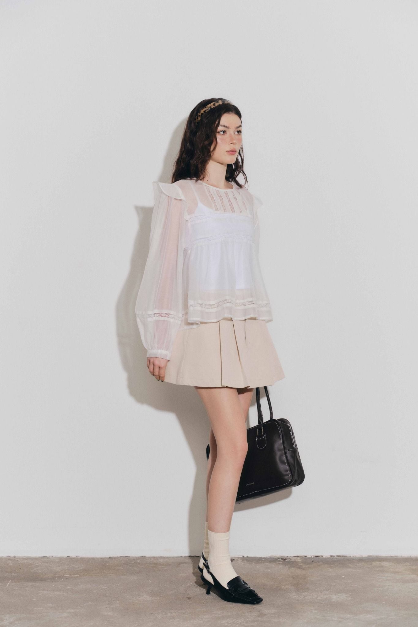 Áo phối đăng ten và ly - Trắng - T1132