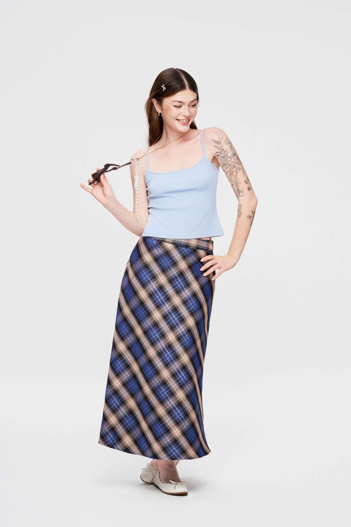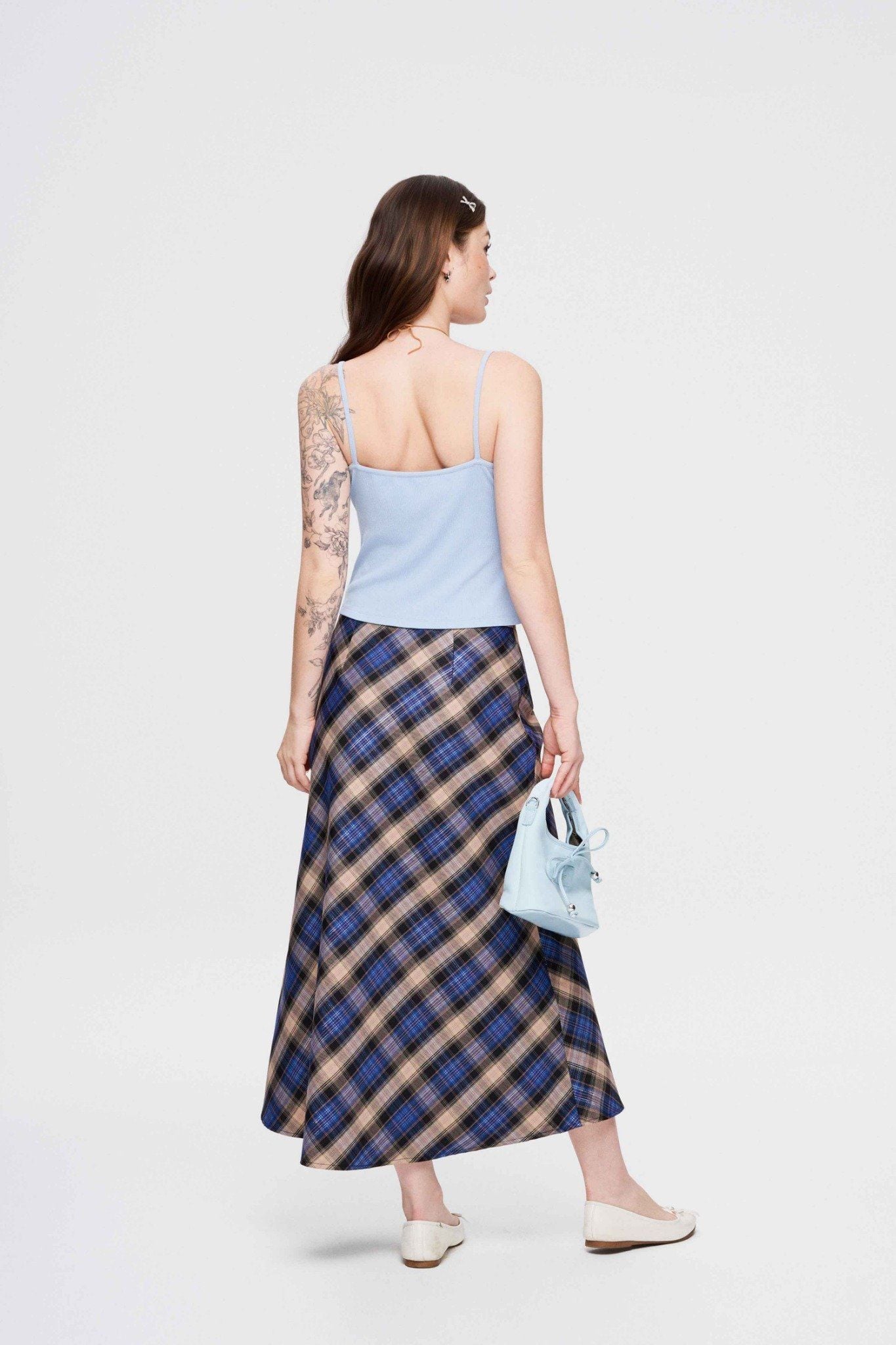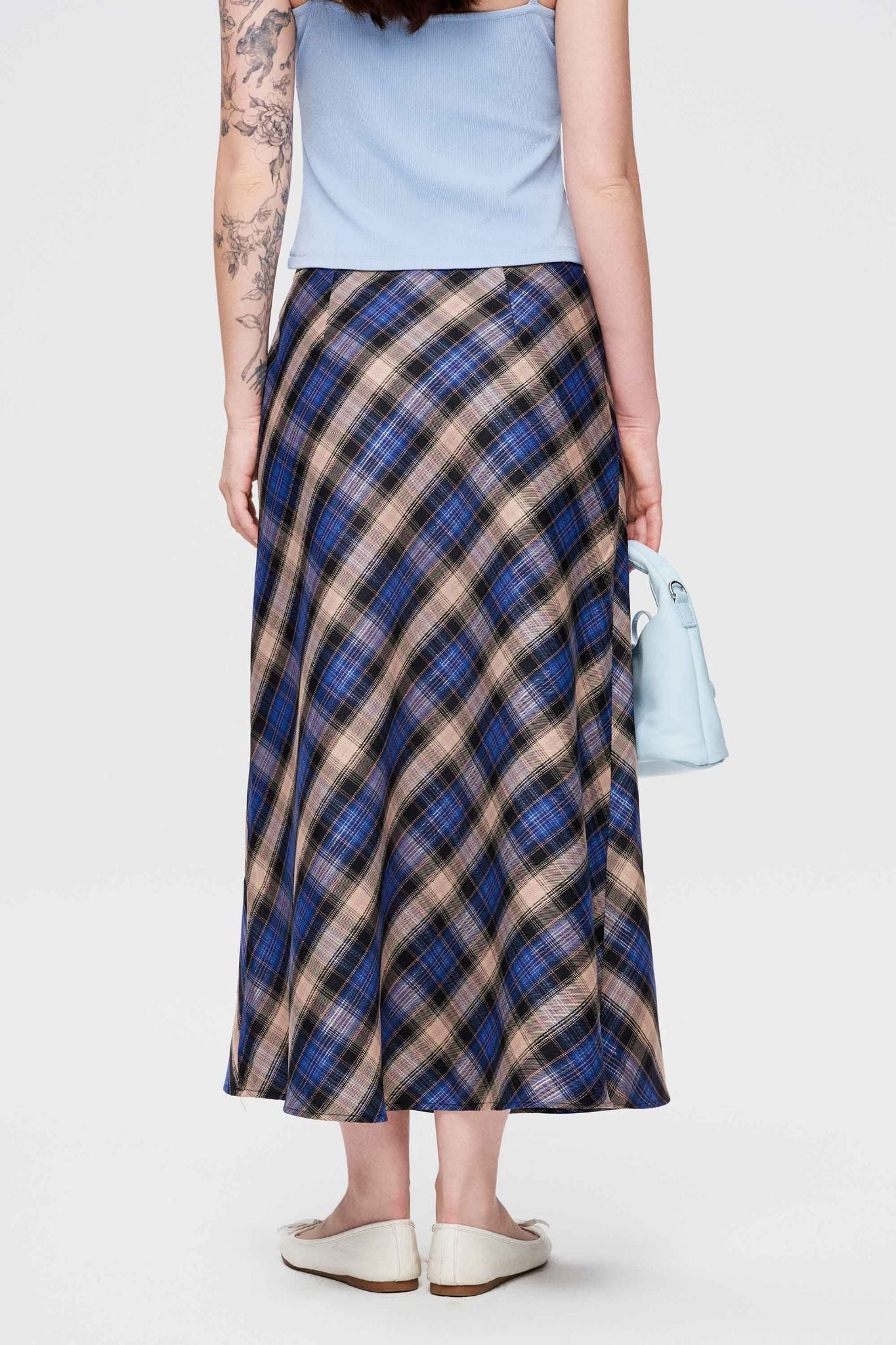 Chân váy midi kẻ ô - Xanh dương - S0295