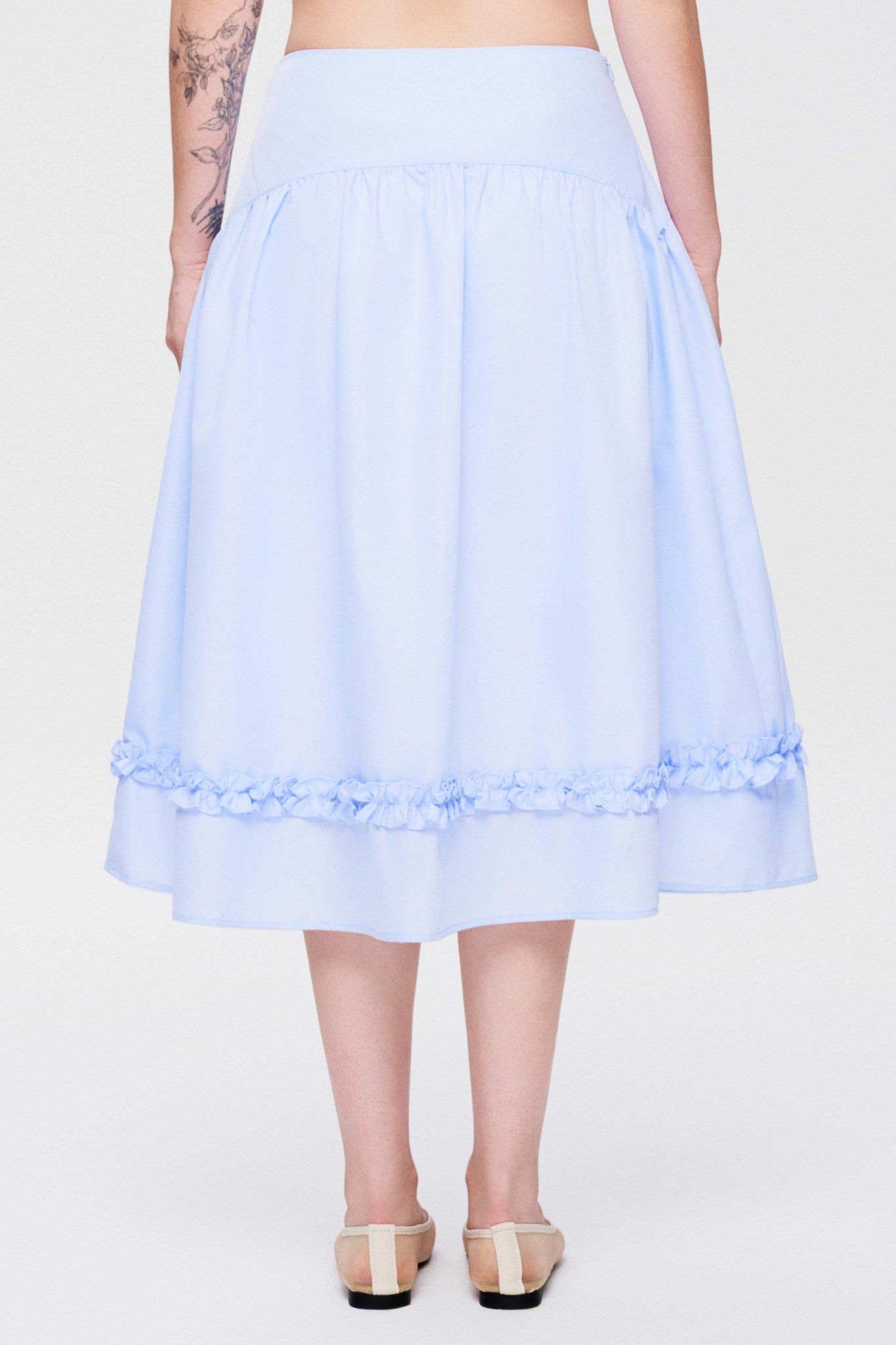 Chân váy midi phối bèo - Xanh biển - S0300