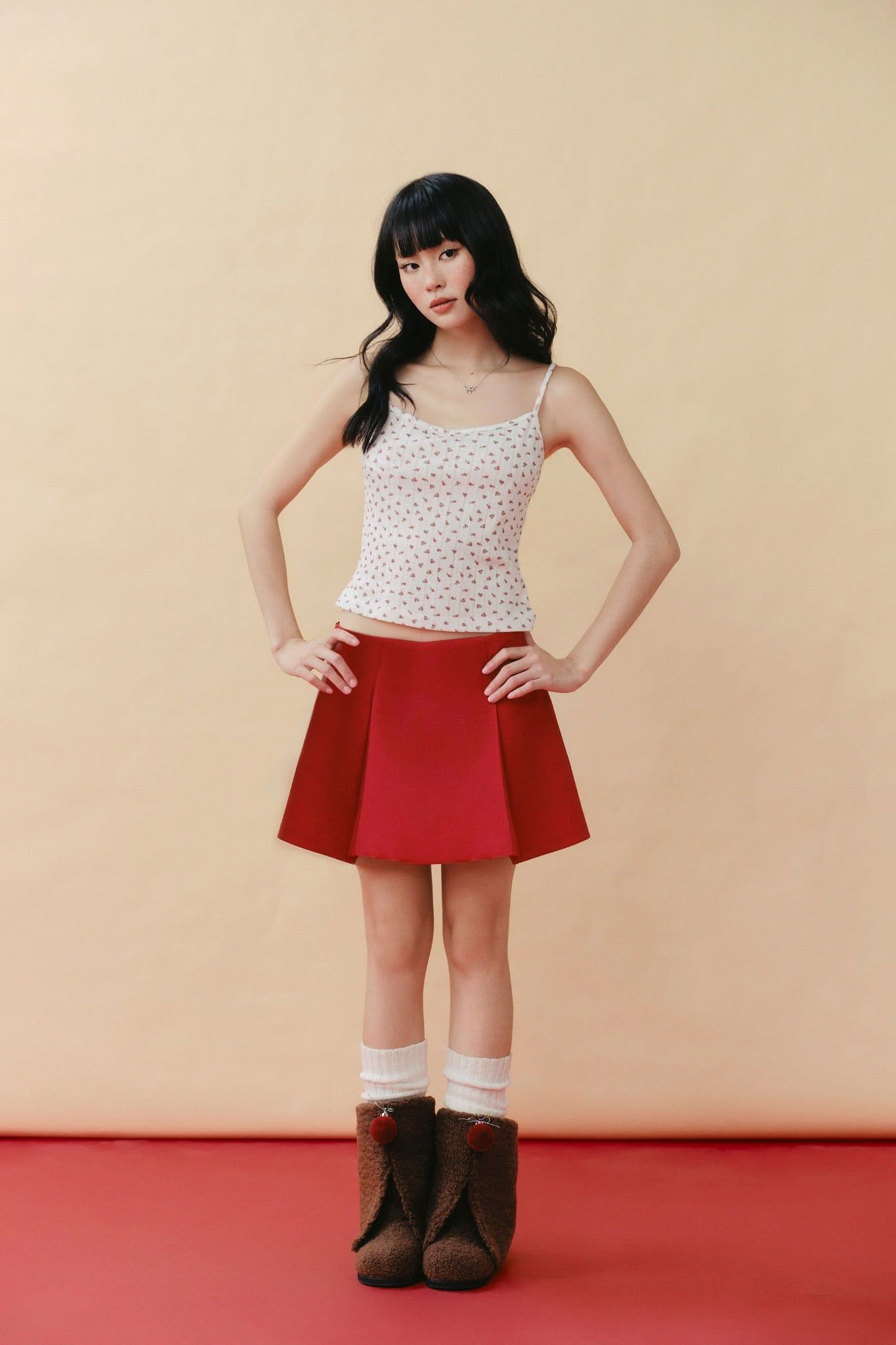 Chân váy mini xếp ly - Đỏ - S0303