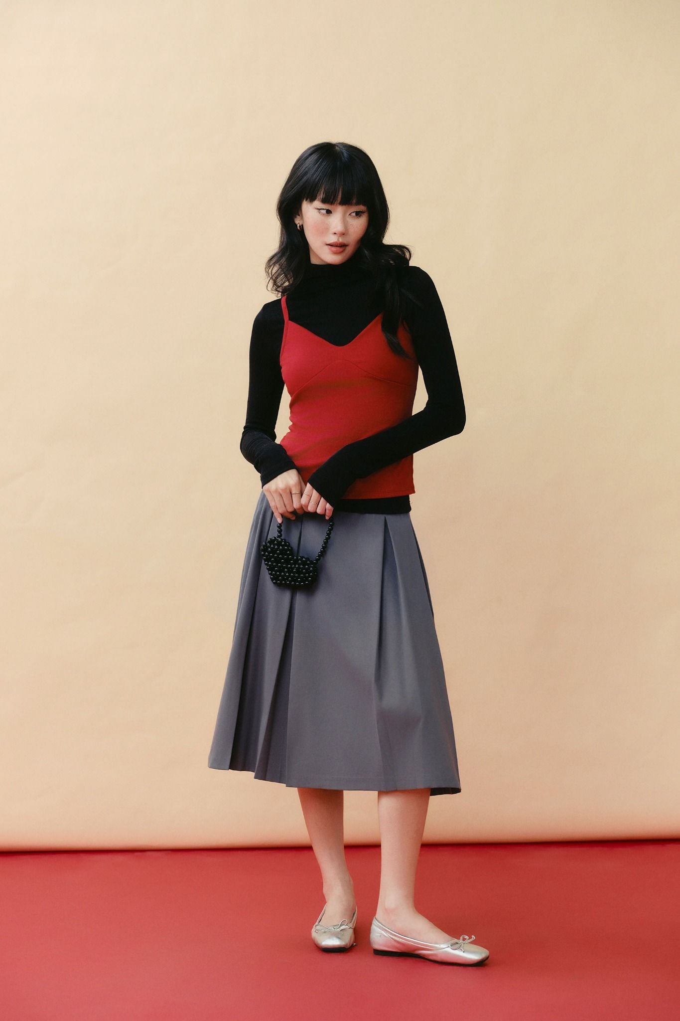 Chân váy xếp ly dáng lửng - Xám - S0302