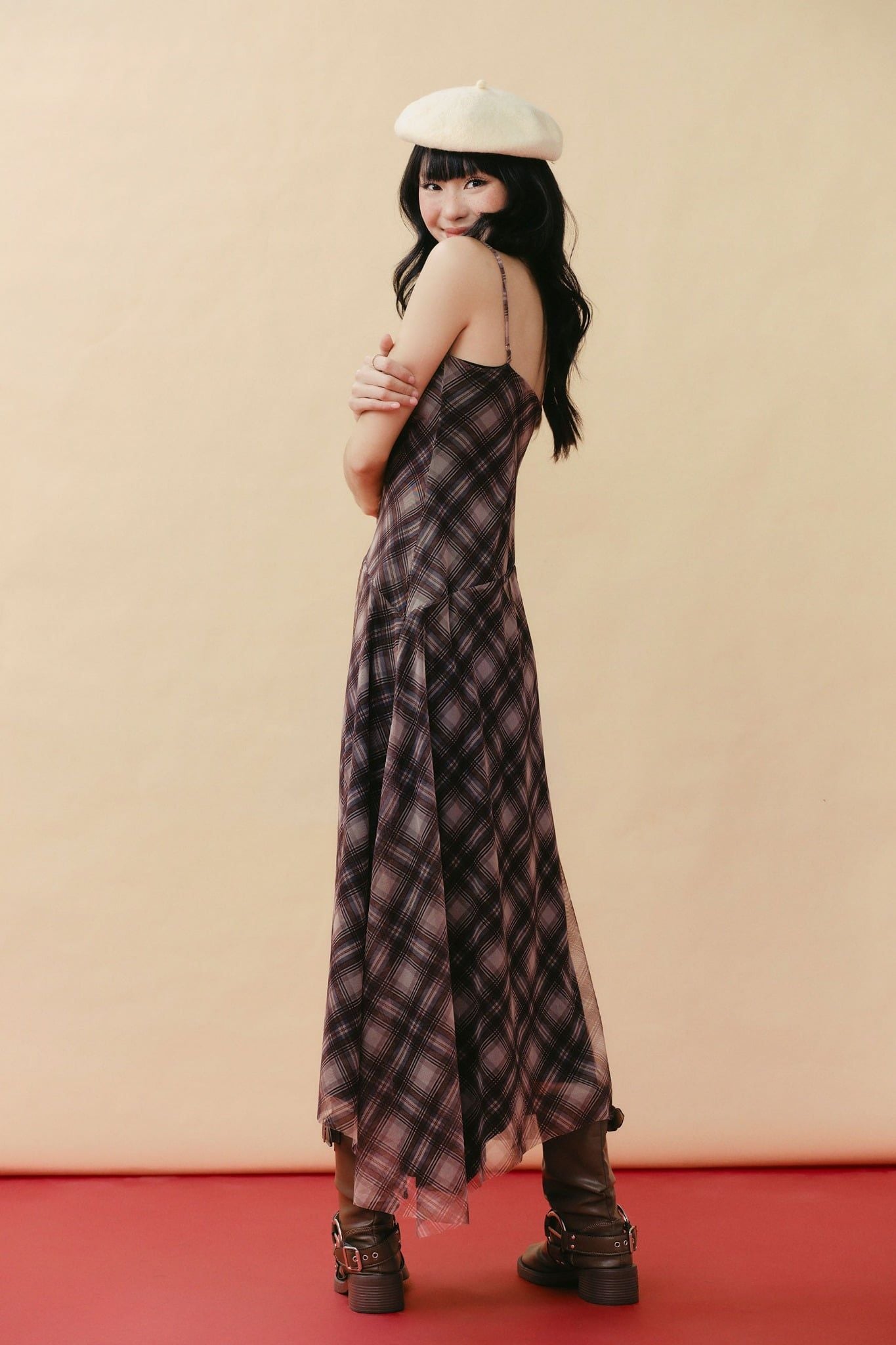 Đầm cổ đổ tùng xéo - Nâu - D0721
