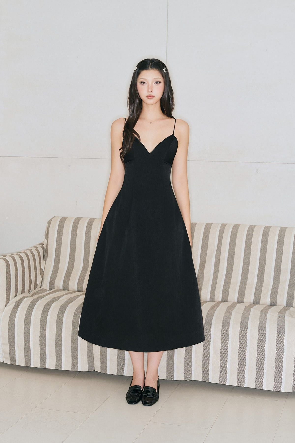 Đầm midi cúp ngực cổ V - Đen - D0726