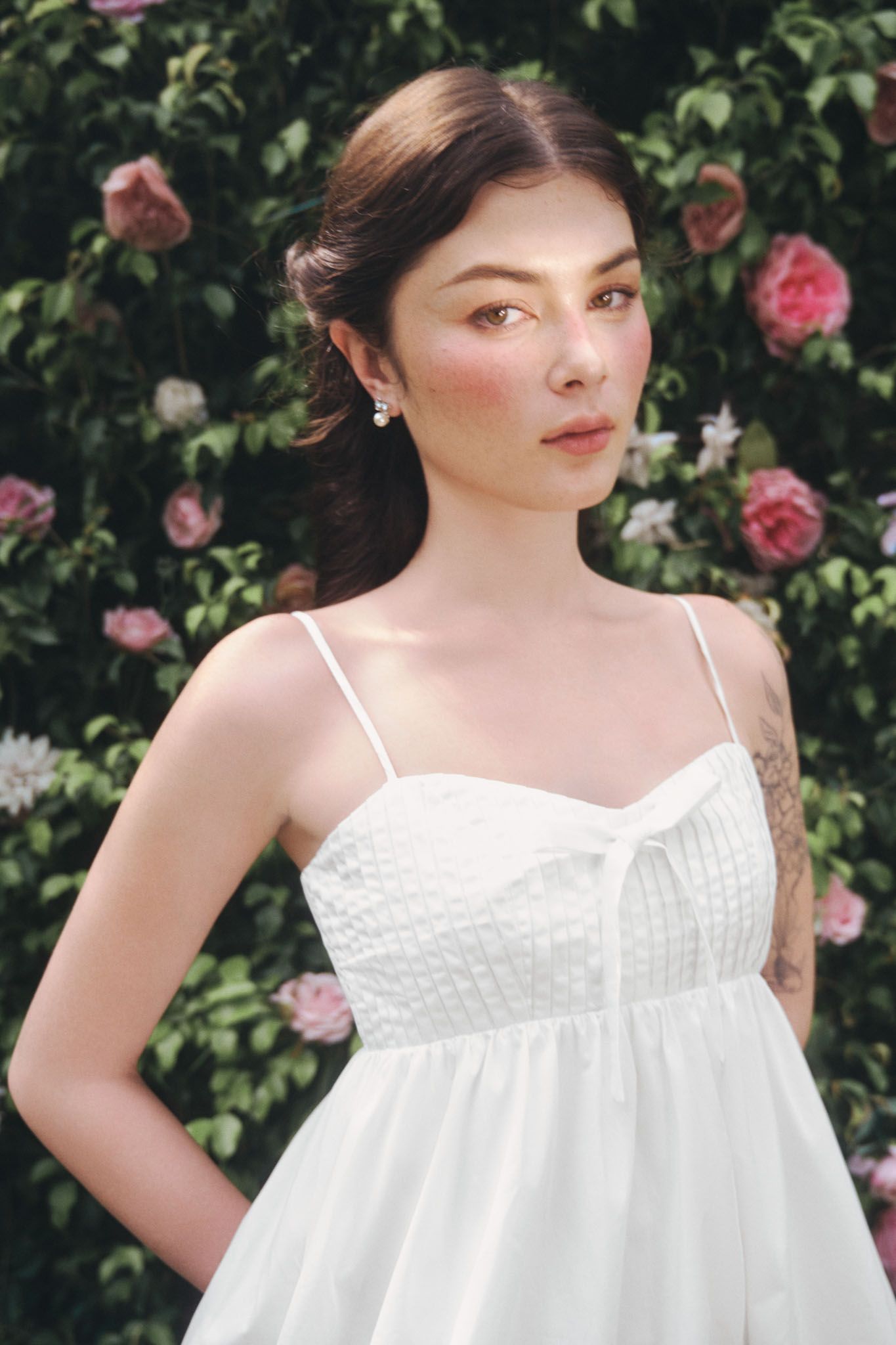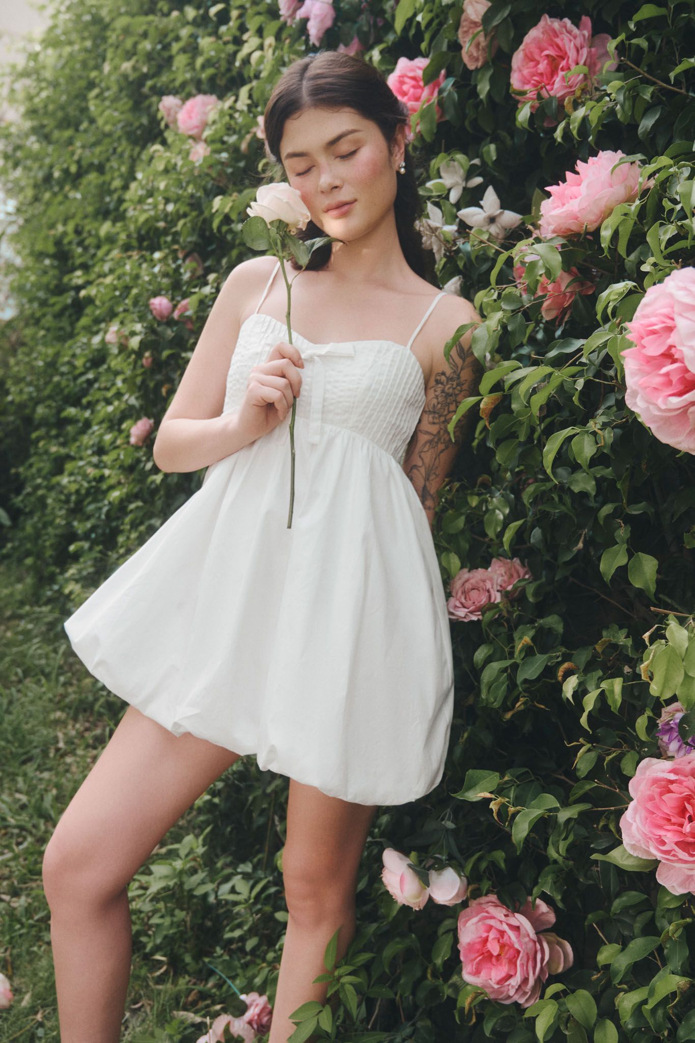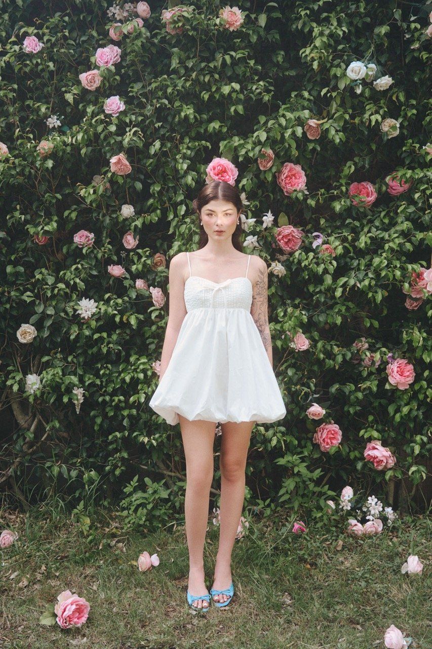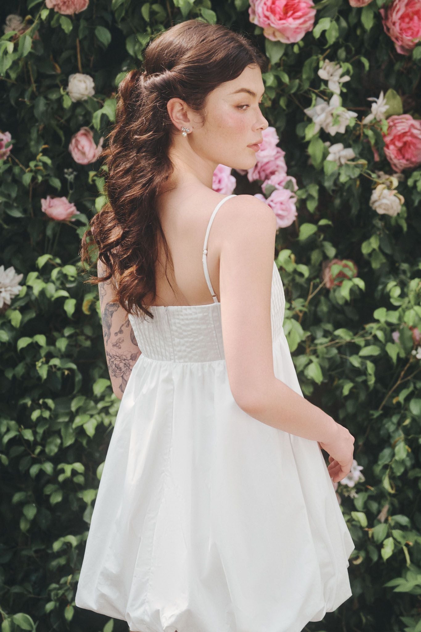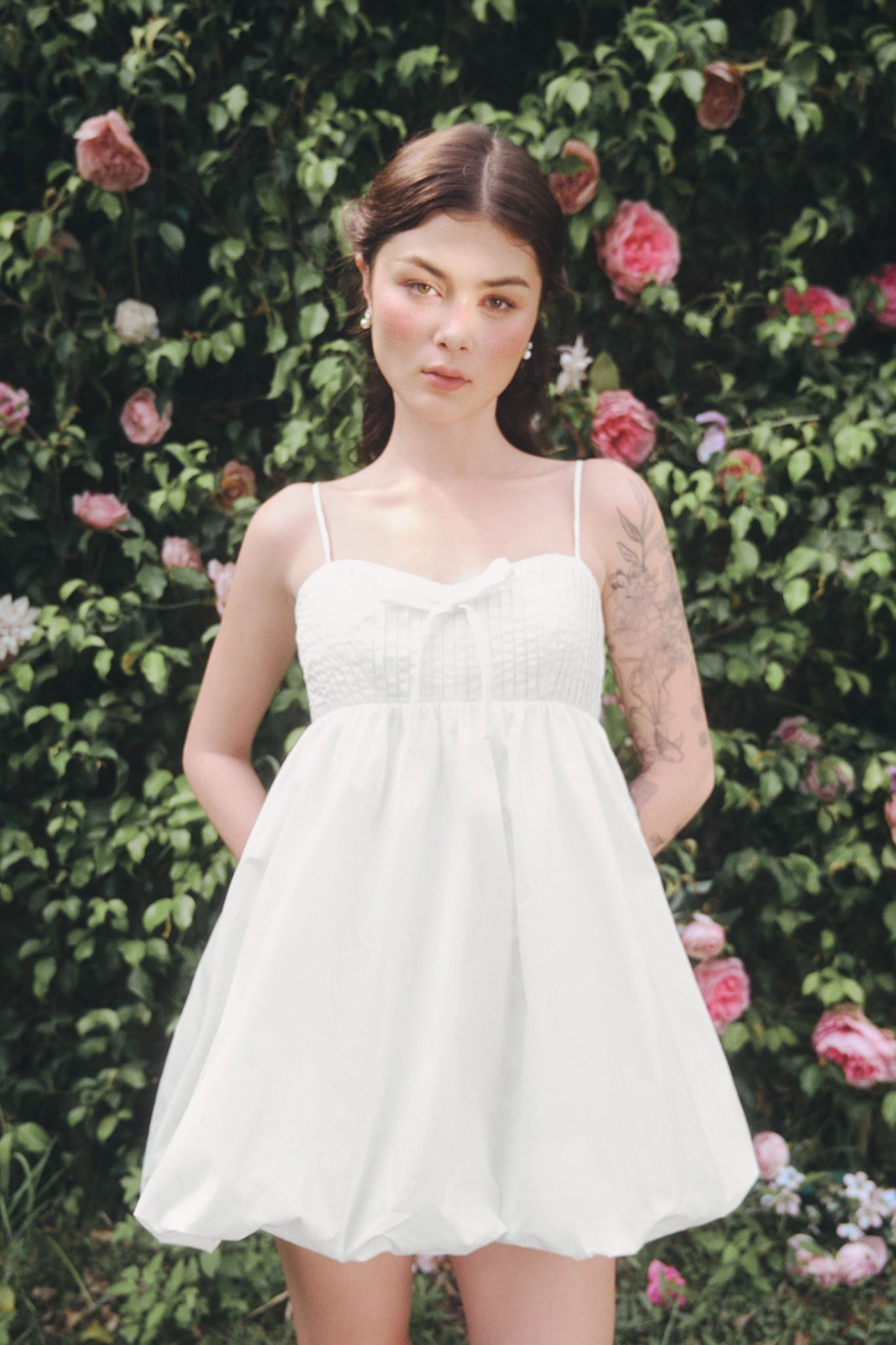 Đầm ngắn tùng bí cúp ngực - Trắng - D0657