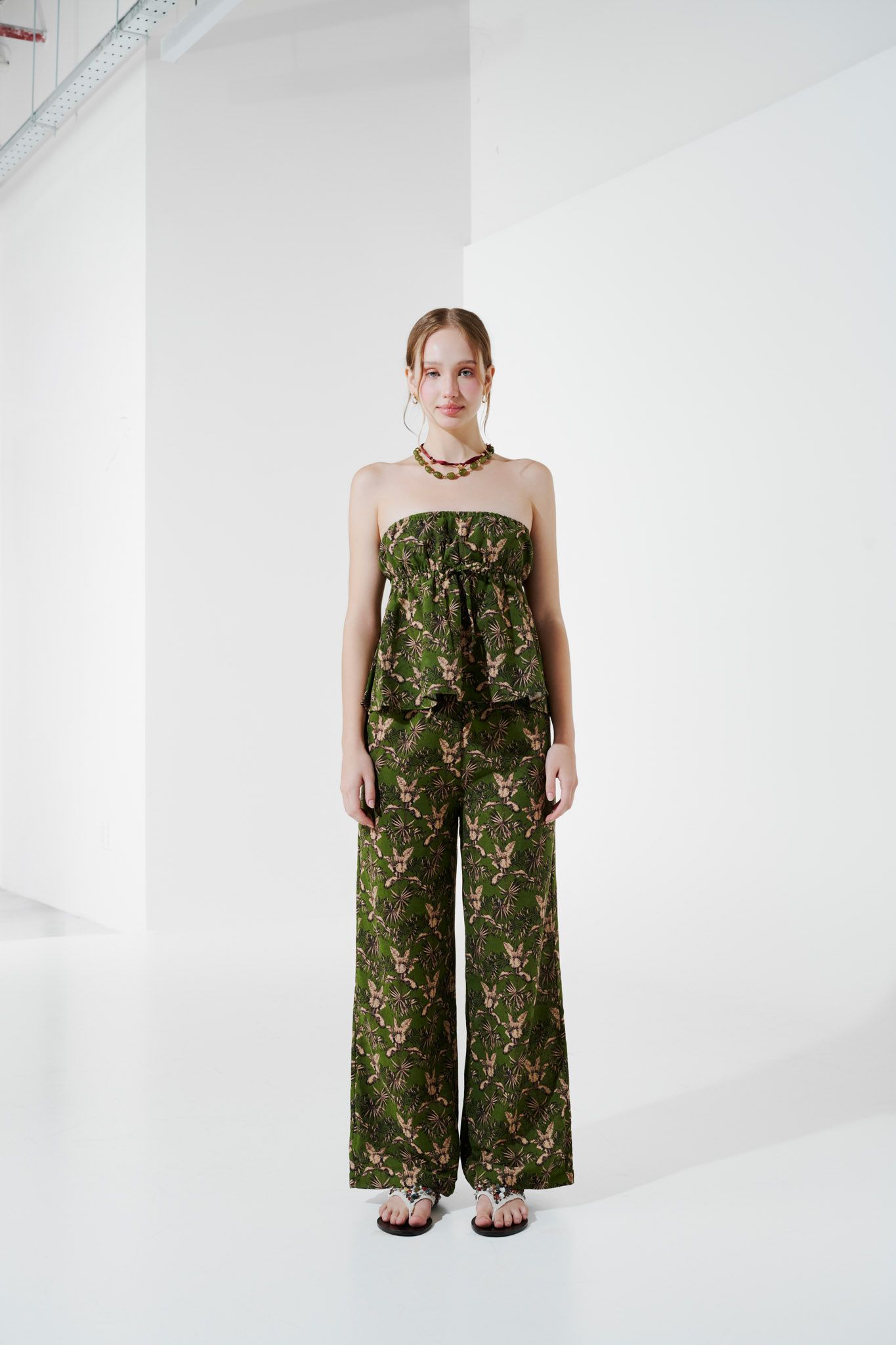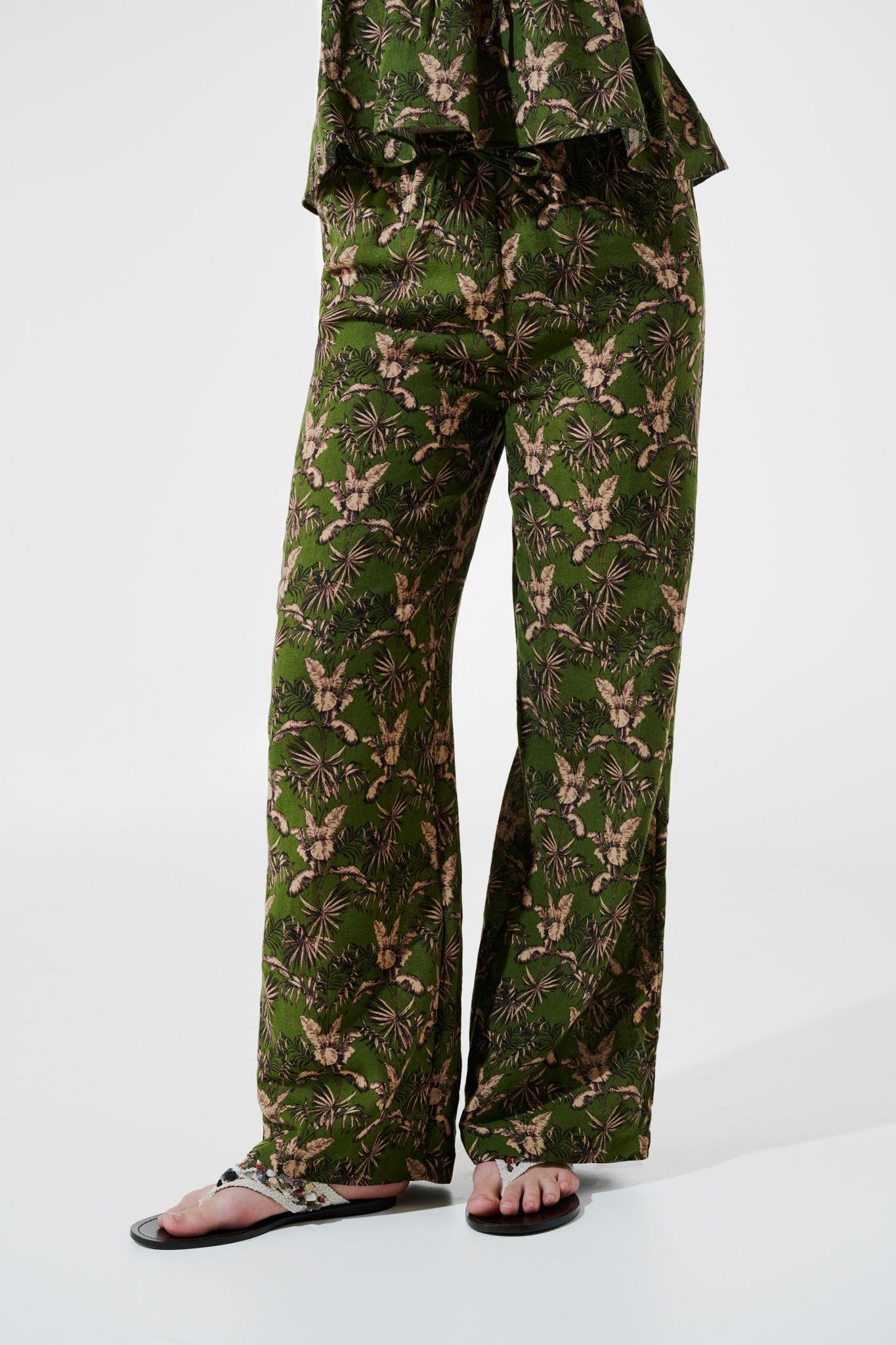 Quần dài vải thô in hình - Xanh lá - Q0359