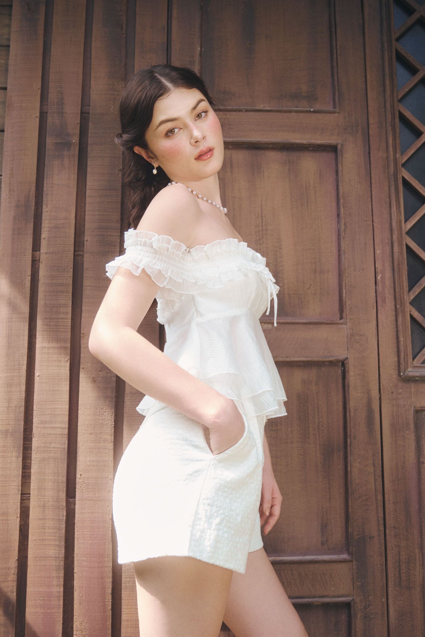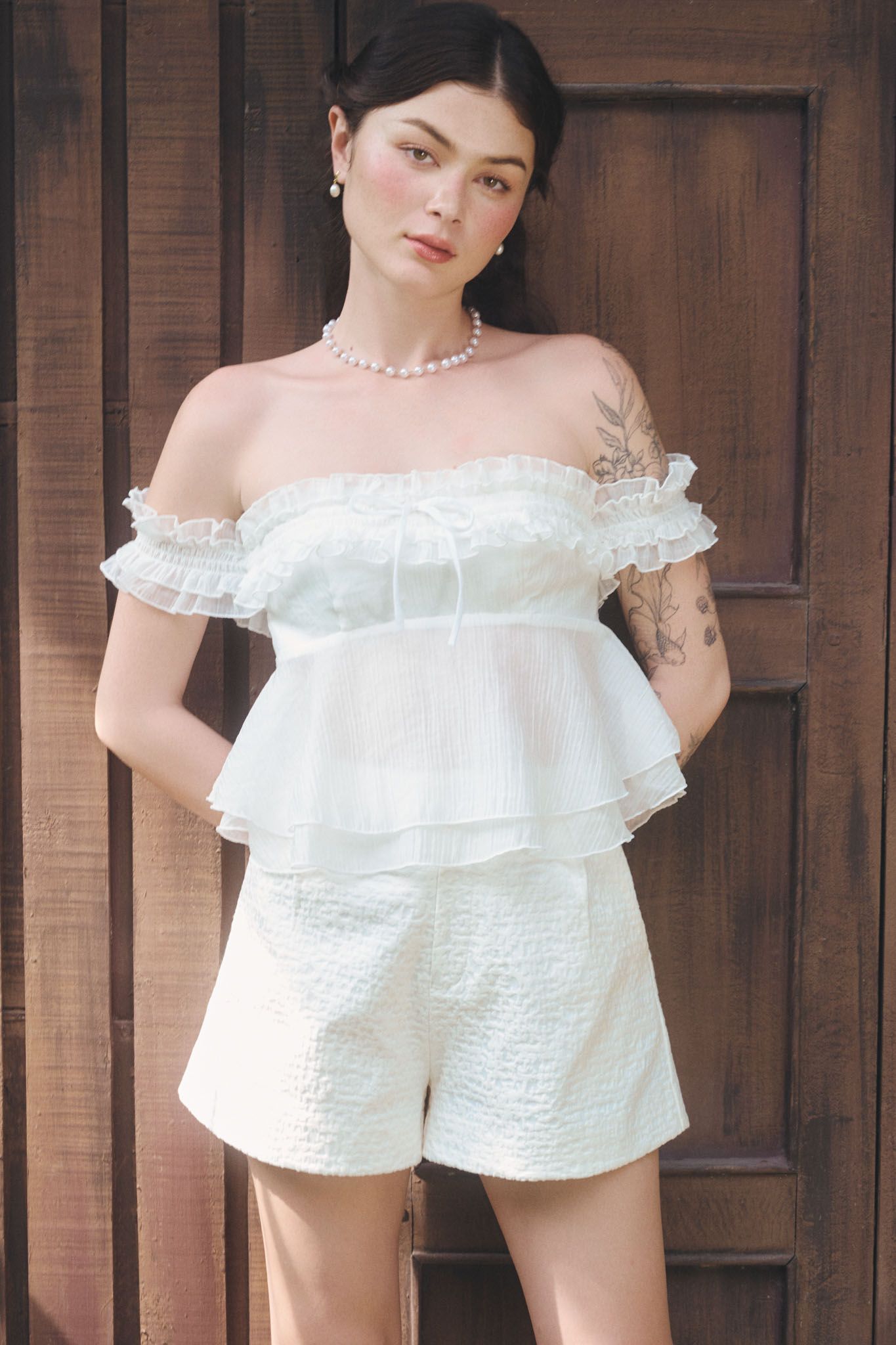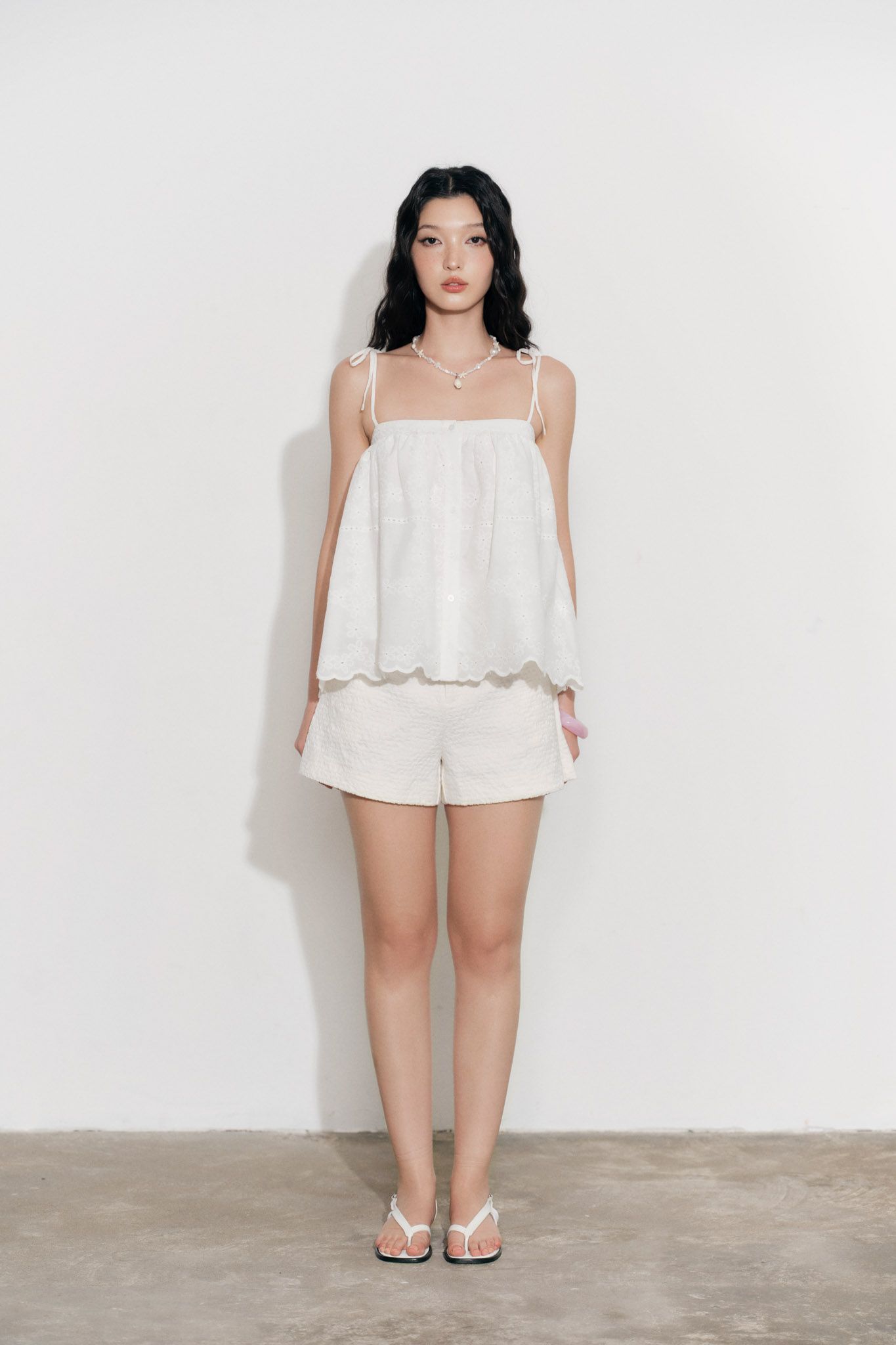 Quần short xếp ly vải hiệu ứng - Trắng kem - Q0383