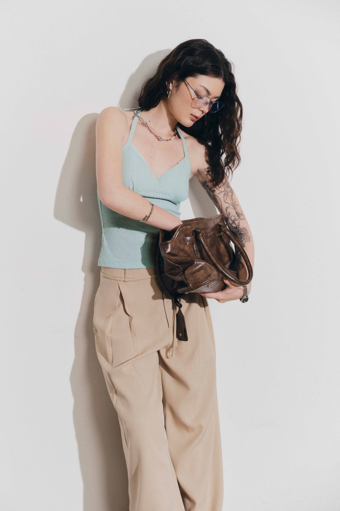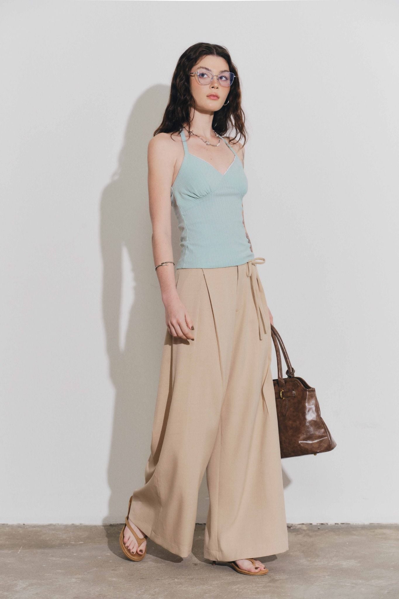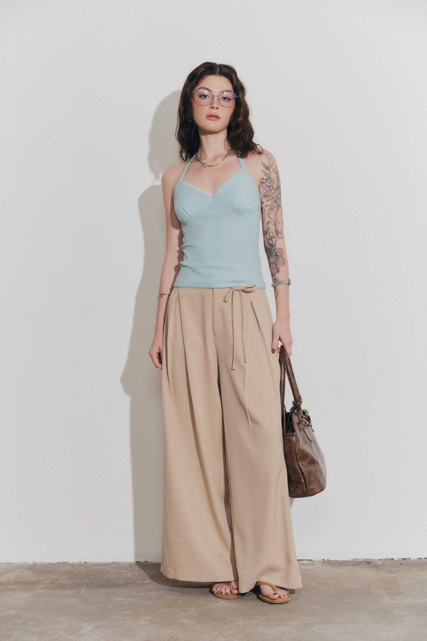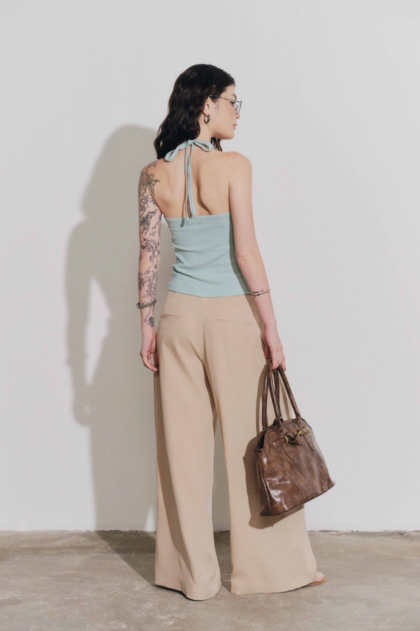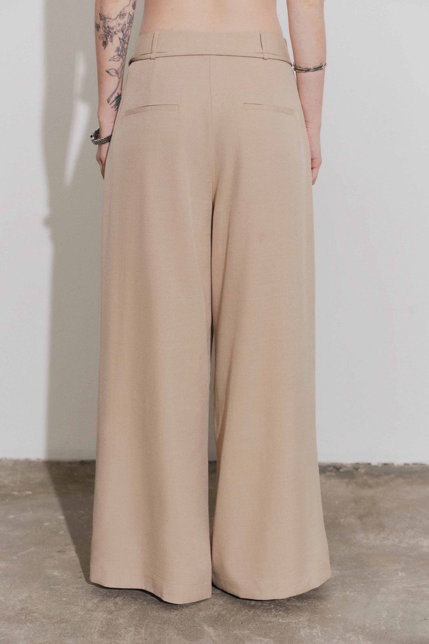 Quần tây xếp ly ống rộng - Be đậm - Q0407